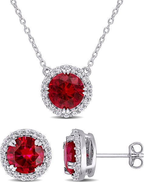REEDS Created Ruby And Created White Sapphire Sterling Silver Earrings And Pendant Necklace Gift Set
