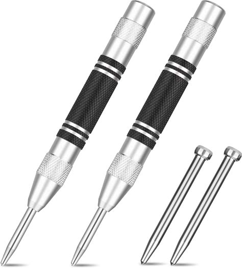 DJGINRO 2Pcs Automatic Center Punch, 5" Premium Steel Spring Loaded Center Hole Punch, Adjustable Spring Impact Force Center Marker Tools For Wood,