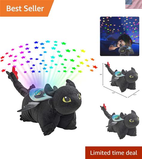 Pillow Pets 11 Inch How To Train Your Dragon Toothless Sleeptime Lite, NBC Universal Stuffed Animal Nightlight, Plush Toy Gift For Kids