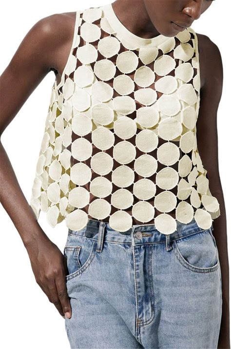 SHENHE Women's See Through Tops Hollow Out Polka Dots Asymmetrical Vest Y2K Tank Tops Club