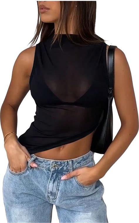 Women Mesh Tank Top Sheer See Through Sexy Going Out Top Clubwear
