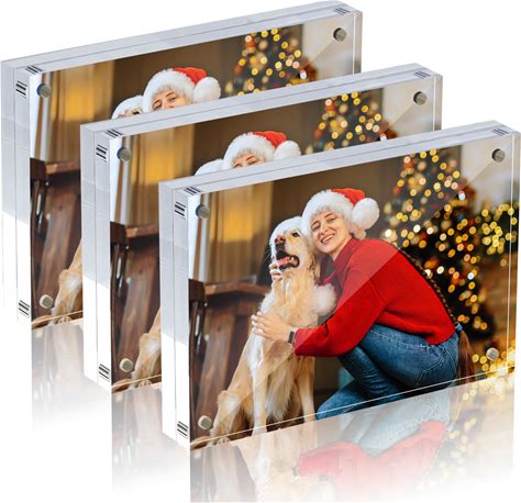 ESSDIAR 4X6 Inches Acrylic Picture Frame,Clear Freestanding Double Sided Magnetic Acrylic Lucite Frameless Transparent,Gift For Desktop Display(3 Pack