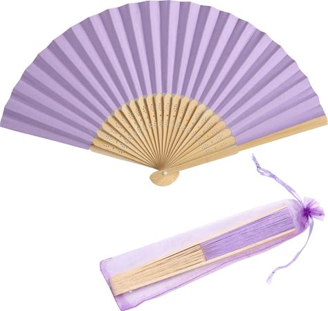 SL Crafts 50Pcs Paper Hand Fan With Organza Bags Bamboo Handheld Folding Fan DIY Decorative Wedding Party Favors (Light Purple)