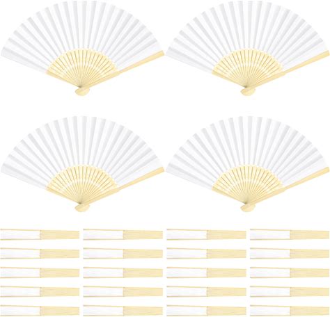 Qunclay 60 Pcs White Paper Hand Fan Bamboo Folding Handheld Wedding Fans For Bridal Dancing Party Favors Church Home Office Decoration Gift DIY