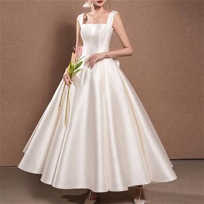 A-Line Ankle Length Wedding Dresses Bridal Shower Dresses Bridal Gown Vintage 1940S / 1950S Little White Dresses Regular Straps Square Neck Graduat...