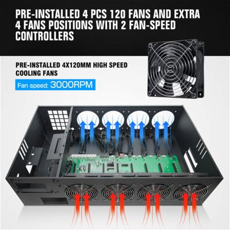 Mining Rig Frames With 4/8 High Airflow Fans, Max 8 Gpus Mining Rig