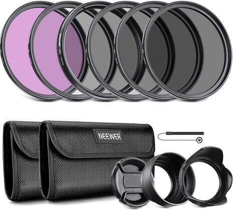 NEEWER 52mm ND Lens Filter Kit: UV, CPL, FLD, ND2, ND4, ND8, Lens Hood And Lens Cap Compatible With Canon Nikon Sony Panasonic DSLR Cameras With 52mm