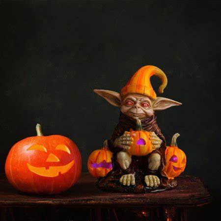 Comefolife Halloween Pumpkin Alien Decor Resin Pumpkin Dwarf Statue With Light For Porch Garden Outdoor Yard Lawn Pathway Decor Fall Gnome Outdoor Art