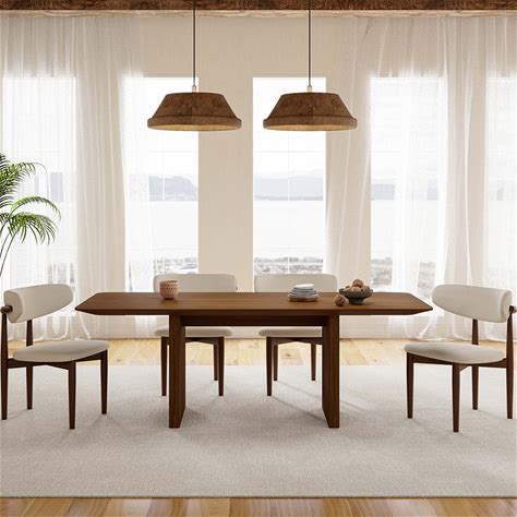 New Customer Offer - Mid Century Modern Furniture - 7-Piece Mid-Century Modern Wood Dining Table Set For 6, Walnut Wood Dining Room Set, 79" Table