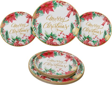 Christmas Dinner & Dessert Plates (32 Pc For 16 Guests) - Holiday Plates Set, Merry Decorations