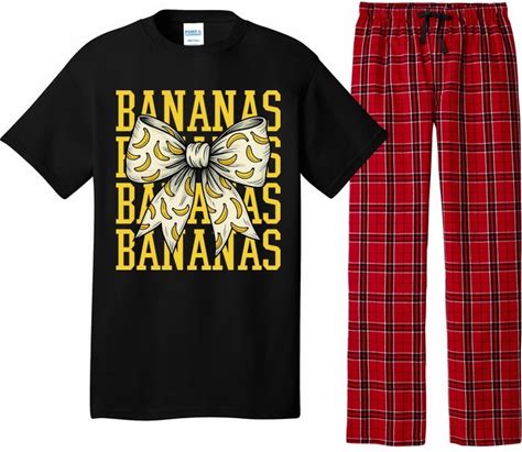Bananas Lovers Coquette Bow Graphic Art Women Kids Plaid Pajama Set