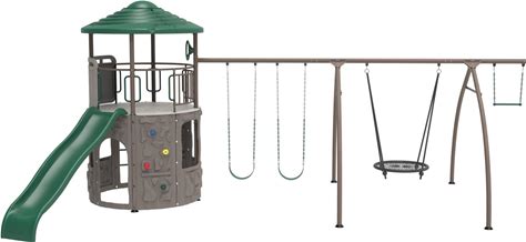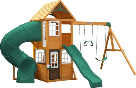 Backyard Discovery Cedar Cove Cedar Wood Swing Set, Slides, Clubhouse - 18'4" X 15'3" - Brown - Kids