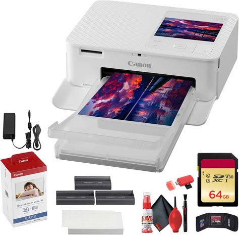 Canon SELPHY CP1500 Compact Photo Printer (White) (5540C002) kp-108in Color Ink And Paper Set + 64GB Memory Card + Cleaning Kit + Memory Card Wallet +