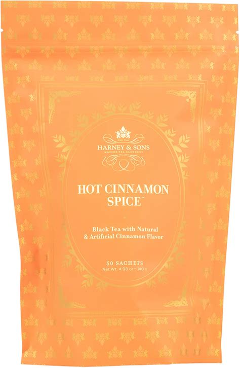 Harney & Sons Hot Cinnamon Spice, Bag Of 50 Sachets, Black Tea W/Orange Pieces And Cloves (Pack Of 1) (Packaging May Vary)