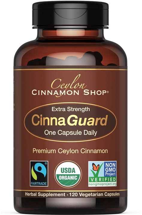 Ceylon Cinnamon Shop Cinnaguard™ Organic Ceylon Cinnamon Supplement 2500Mg Per Capsule | Extra Strength | 4 Month Supply | 120 Count - Non-GMO &