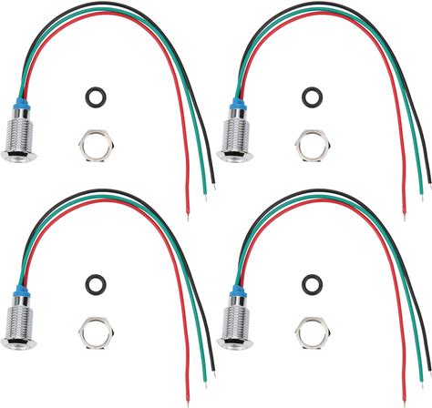 Hilitand 4 Sets Common Anode Round Leds, 10mm Pre-Wired 2-Color Lights Waterproof Indicator Light 3-6V(Red And Green)