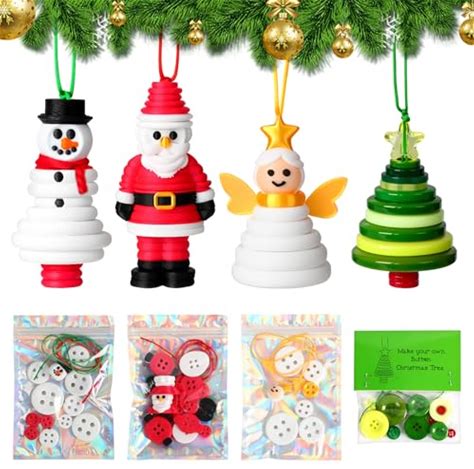 Faneswalk DIY Christmas Button Ornament Making Set,Craft Buttons Kit With Christmas Snowman/Santa/Angel/Tree,Fun Holiday Decorations For All Ages, For Xmas Tree Hanging Decorations (4PCS)(4PCS)