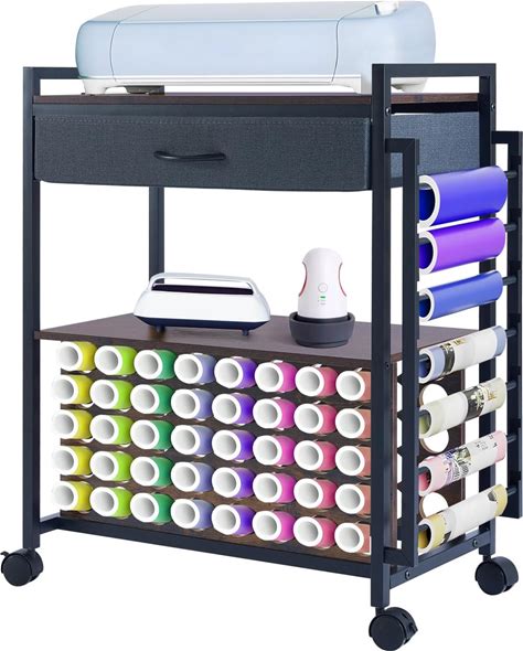 Kokorona Rolling Craft Cart With Storage Drawers Folding Shelves, Mobile Craft Table Organizer, Holds 30 Vinyl Roll Holders And Scrapbooking Supplies, Craft Storage Cart For Craft Room