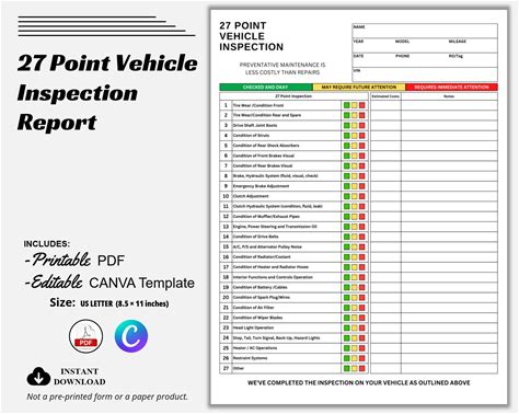Vehicle Inspection Report Form: Printable Checklist (PDF Digital D