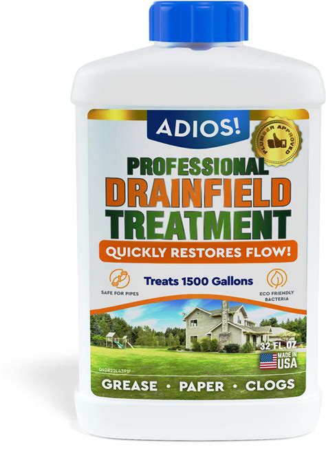 Adios! Drain Field Treatment And Cleaner For Leach Fields, Safely Opens And Restores Drainfields - 32Oz
