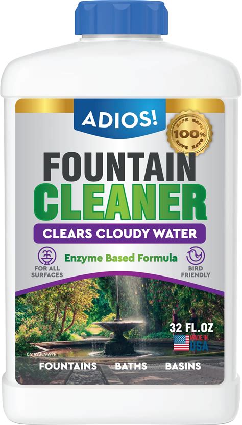 Adios! Fountain Cleaner And Clarifier For Outdoor And Indoor Fountains - Safe For Plastic, Metal, Glass And Stone (32Oz)
