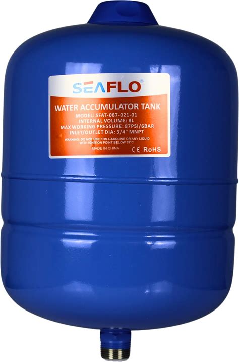 SEAFLO 2 Gallon Pre-Pressurized Accumulator Expansion Tank - Reduces Pump Cycling, Smooth Water Flow, 87 PSI, 3/4" MNPT, Compact Design For RV, Marine