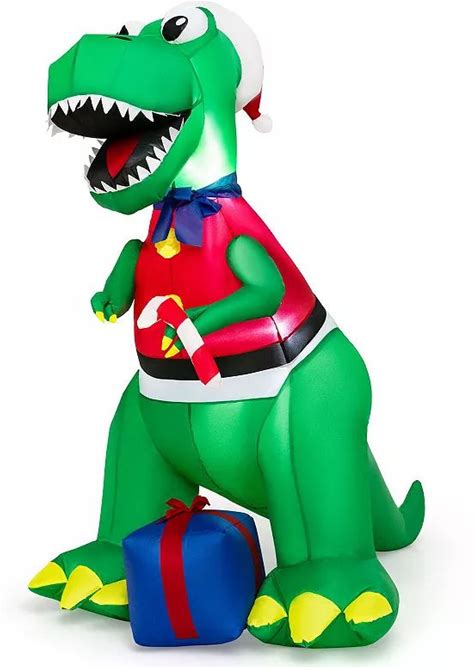 Costway 6ft Inflatable Christmas Dinosaur Dinosaur Decoration With LED Lights & Gift Box, Multicolor