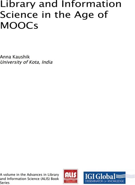 Library And Information Science In The Age Of Moocs A€" Pdf/Epub Version Downloadable