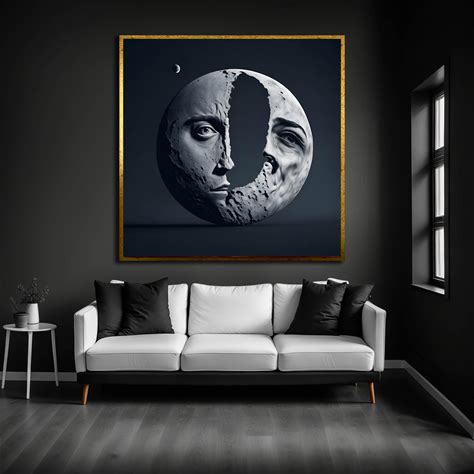 Modern Moon Face Art: Abstract Canvas Print, Home Decor