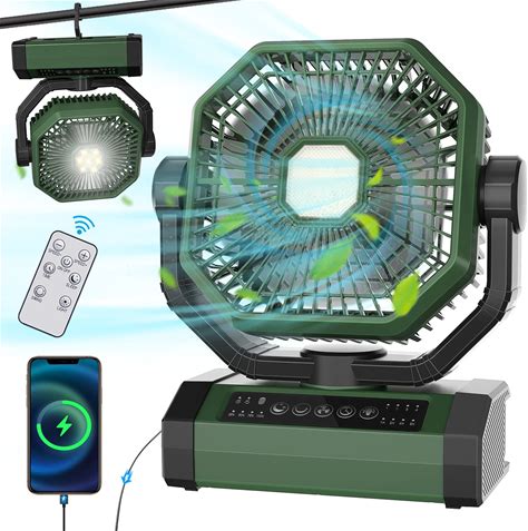 Rechargeable Auto Oscillating Fan With Remote & Timer & LED Light, 9-Inch 20000Mah Battery (70Hrs), Portable USB Fan For Camping, Travel, Worksite &