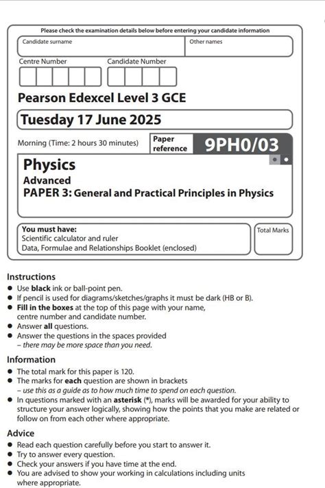 2025 Pearson Edexcel A Level Physics Paper 3 And Mark Scheme 9Ph0/03