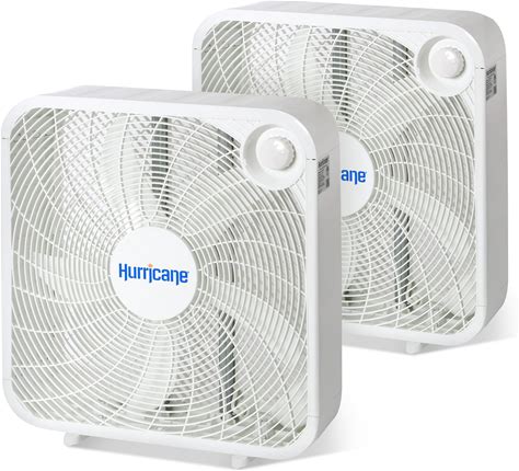 Hurricane 2-Pack Classic Floor Mount Box Fan W/ 3 Quiet Speeds, White, 20" - Corded Portable Electric Air Cooling Unit W/ Powerful 2400 CFM Airflow
