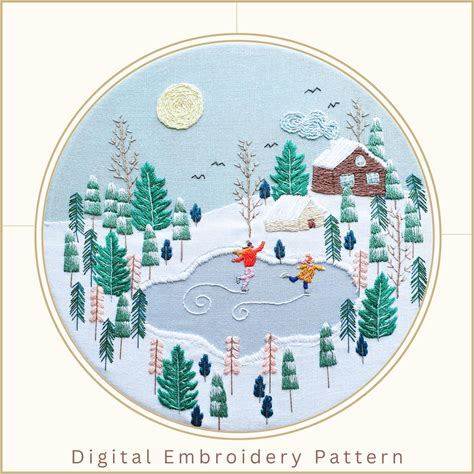 Snowy Forest Embroidery Pattern: Winter Landscape (Digital Download)