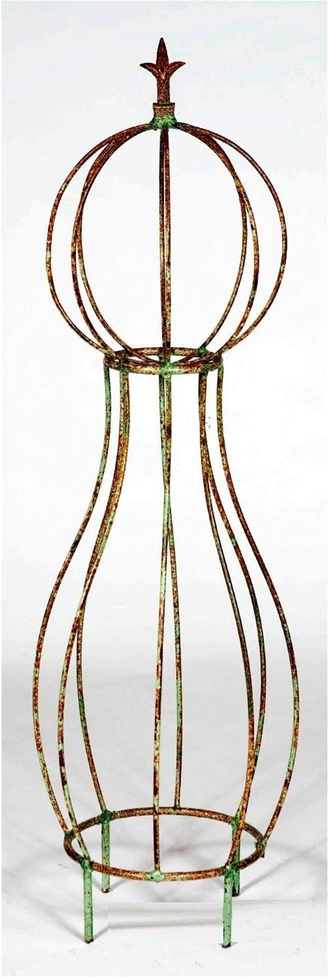 Wrought Iron Finial Topiary Square Trellis, Rustic Garden Plant Climber (55 Inch)