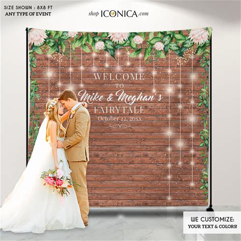 Modern Greenery Black Wedding Photo Backdrop